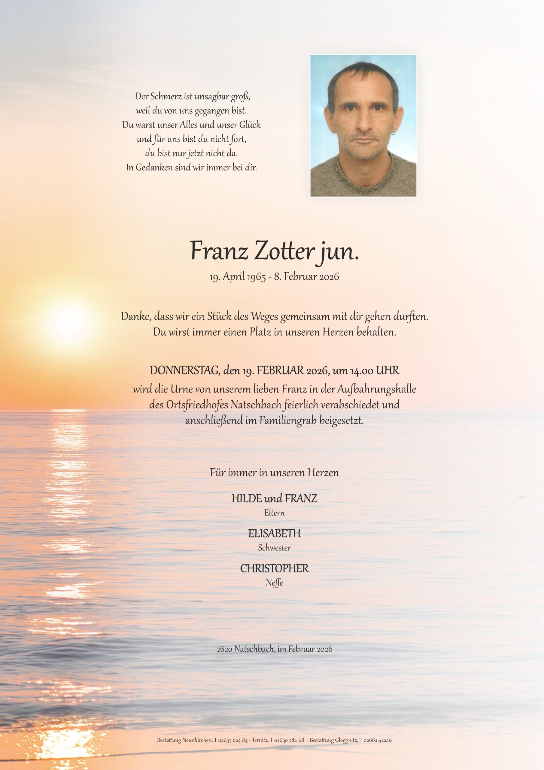 Aufrichtige Anteilnahme entbieten Franz und Waltraud Schneider