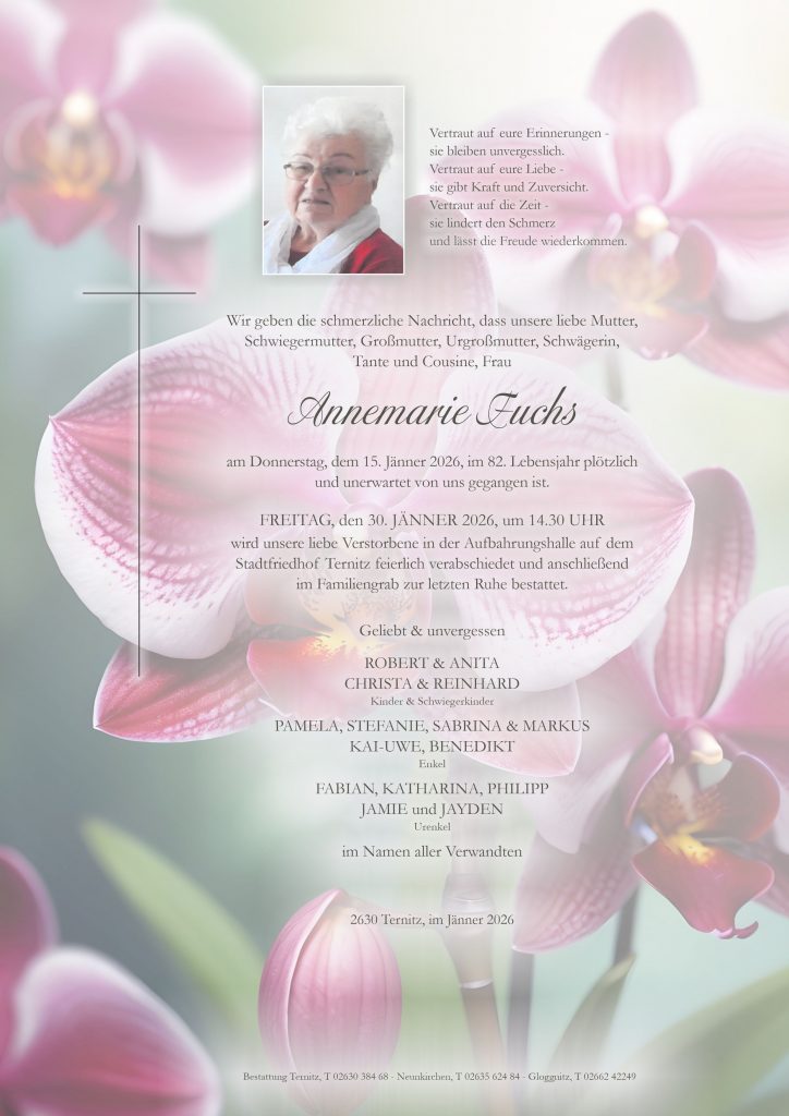 Aufrichtige Anteilnahme an dem schweren Verlust. Fam. Riegler