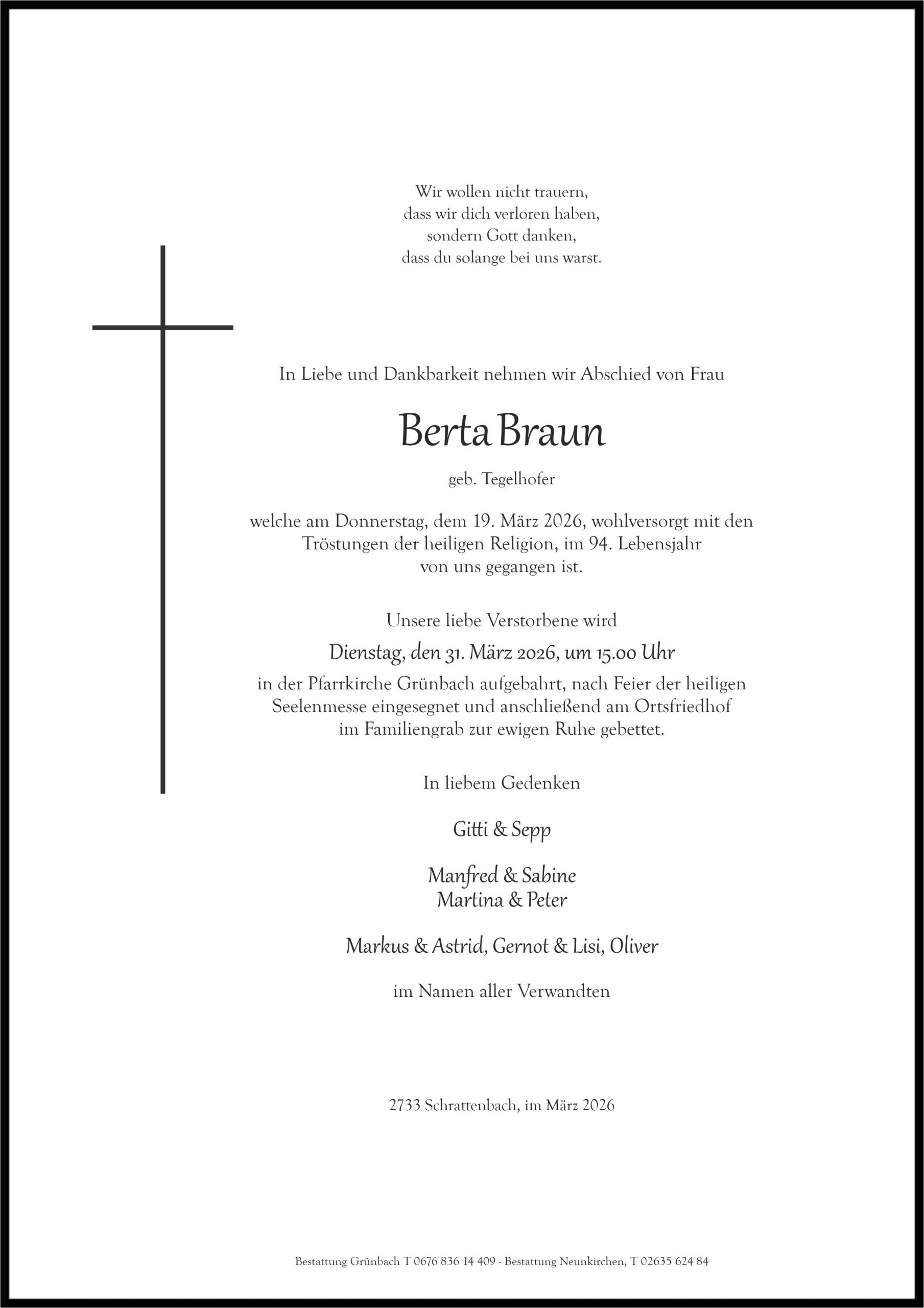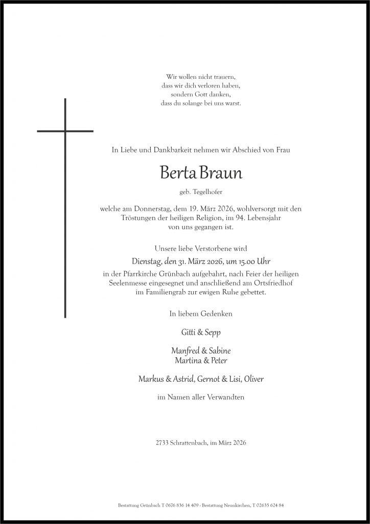 Unser tiefes Mitgefühl entbietet Familie Herbert und Manuela Mohr Grünbach Aufrichtige Anteilnahme
