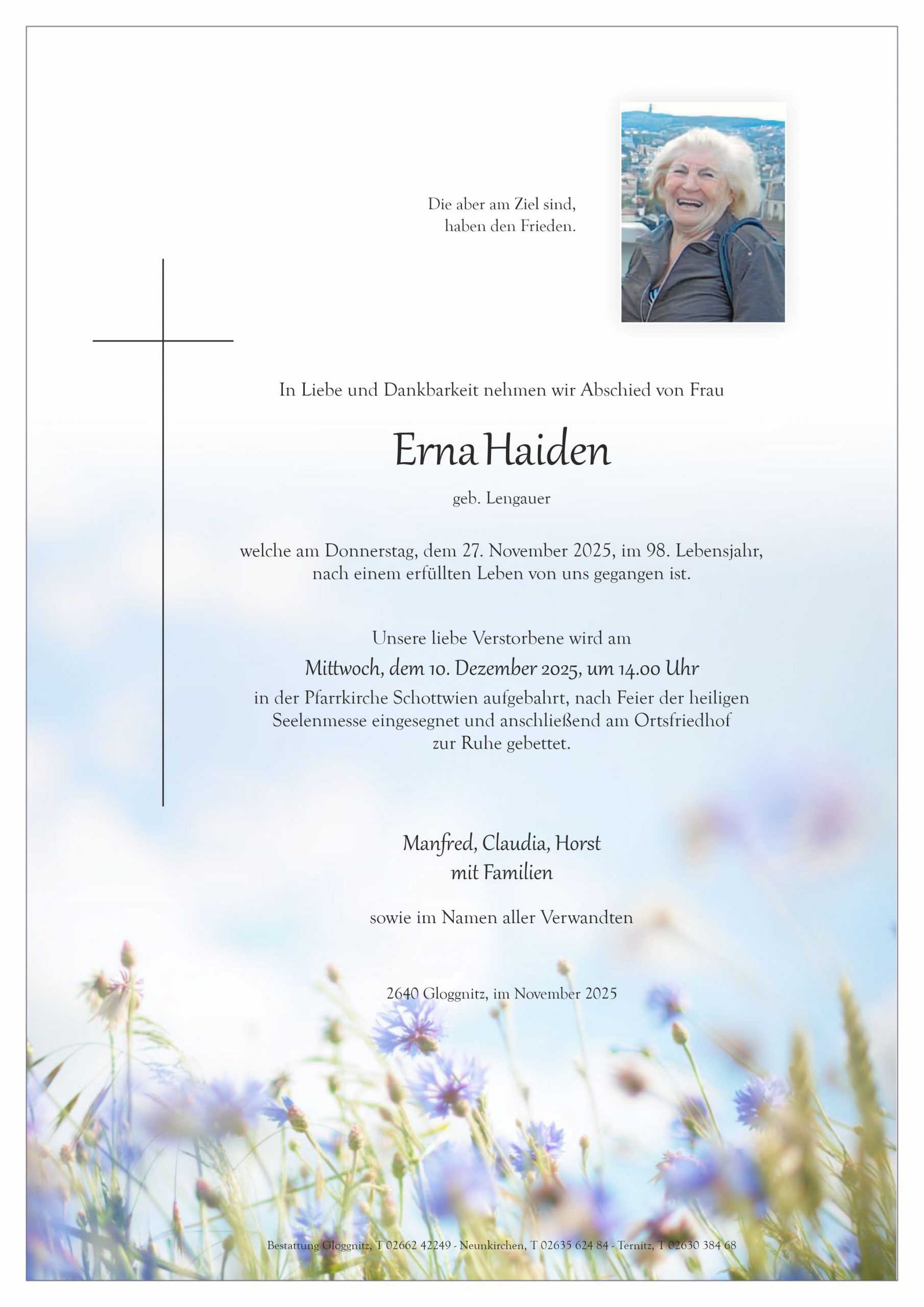 Gedanklich begleiten wir Sie und euch am letzten Weg, aufrichtige Anteilnahme von Ingrid und Gerhard 🕯