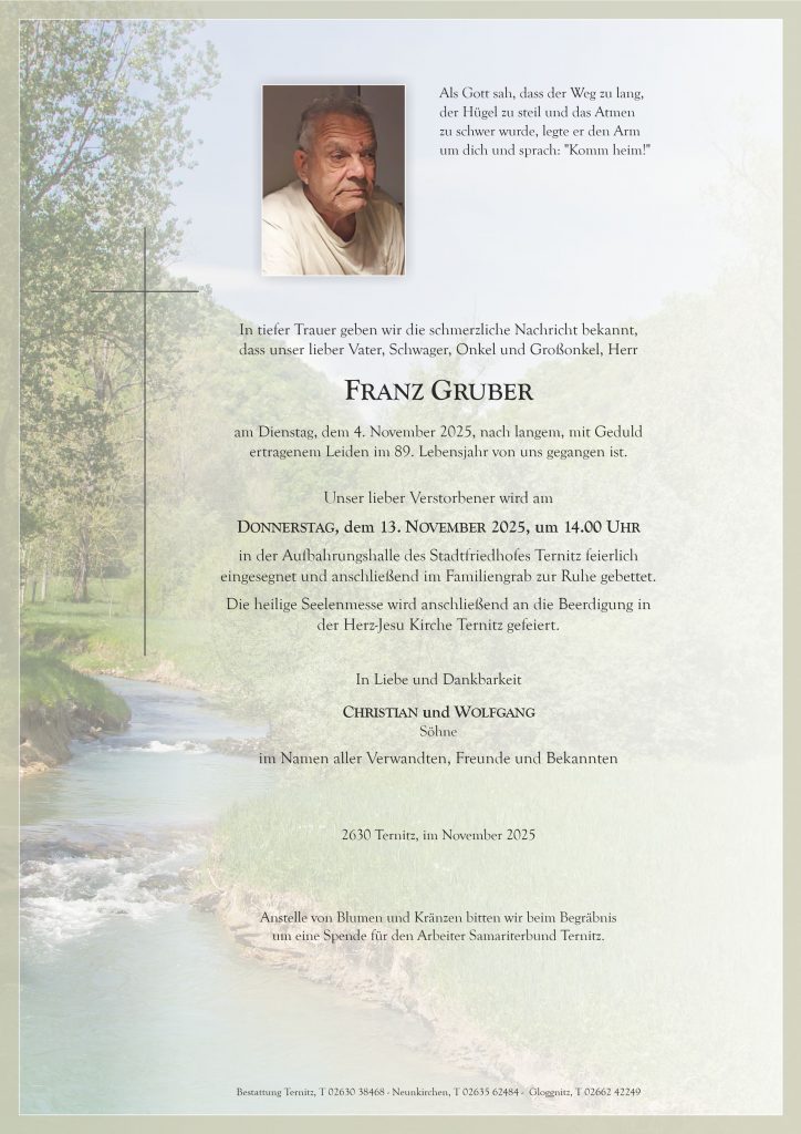 Franz Kremnitzer, Ternitz Hintere Sonnleitenstr. 42, am 13. November 2025