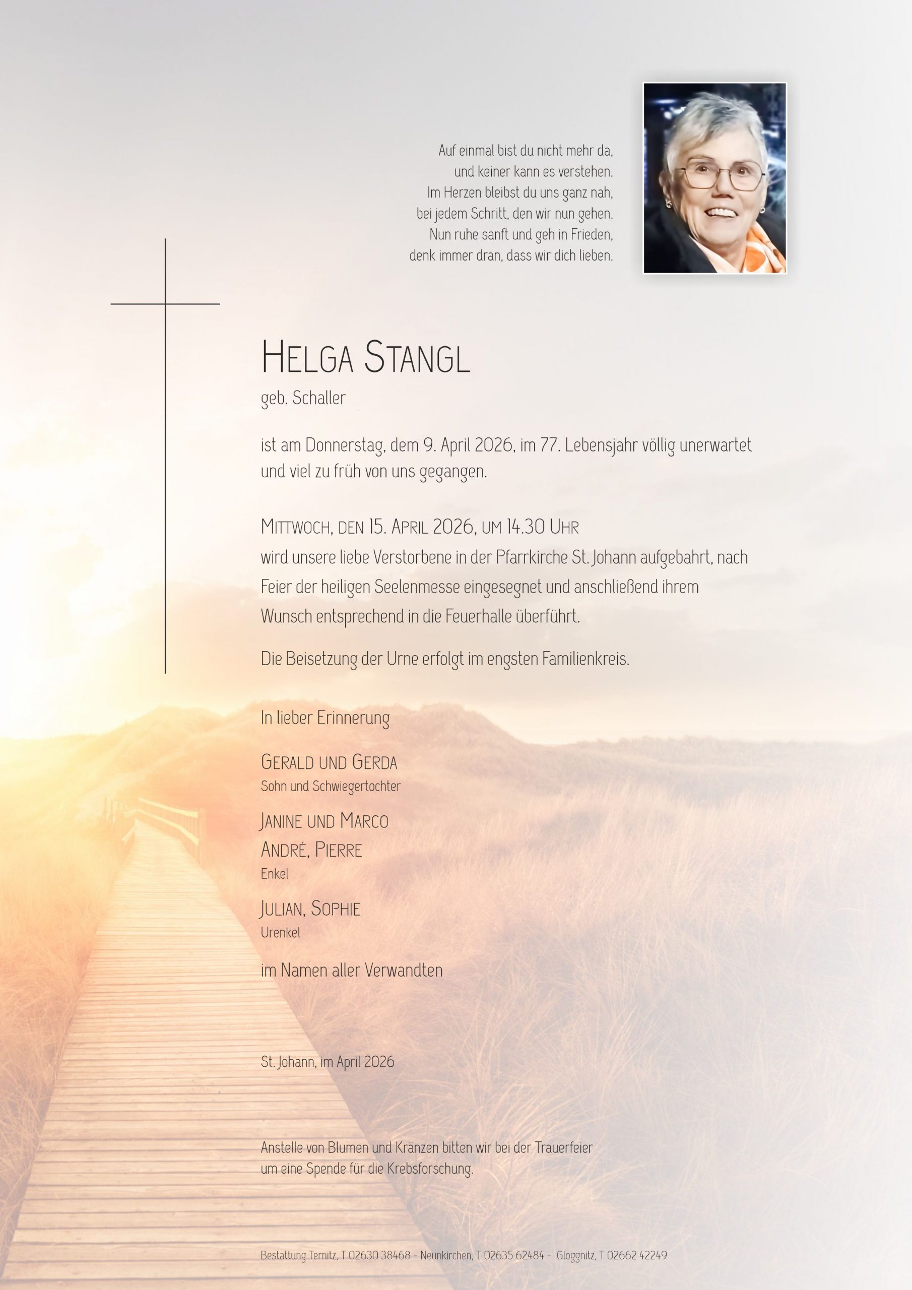 Helga du hinterlässt uns mit Trauer und nicht wahrhaben, dass du nicht mehr da bist.