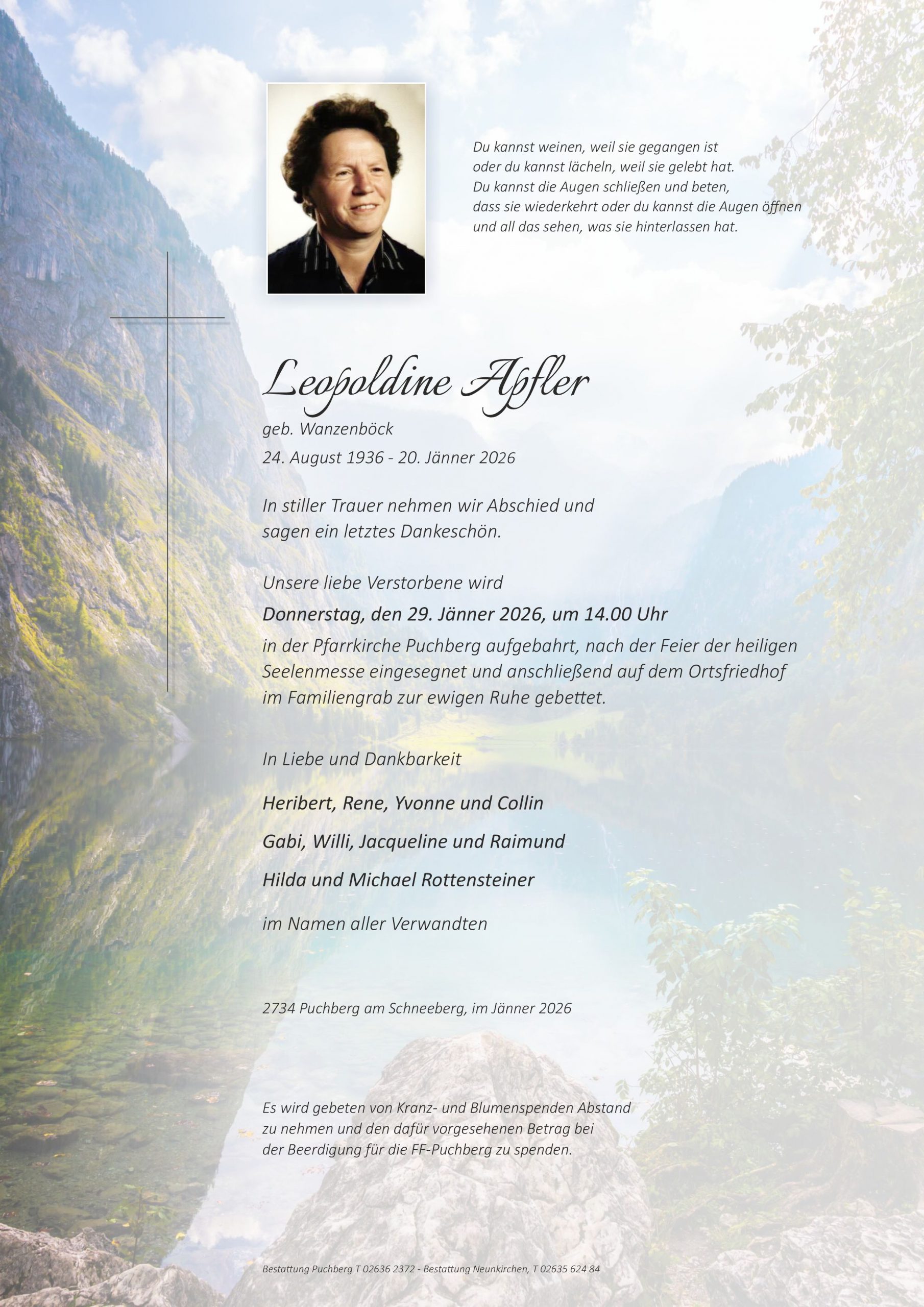 Aufrichtige Anteilnahme entrichtet Euch Familie Leisentritt (Margarete Leisentritt aus Sieding, Carina und Hans Leisentritt aus Pottschach)