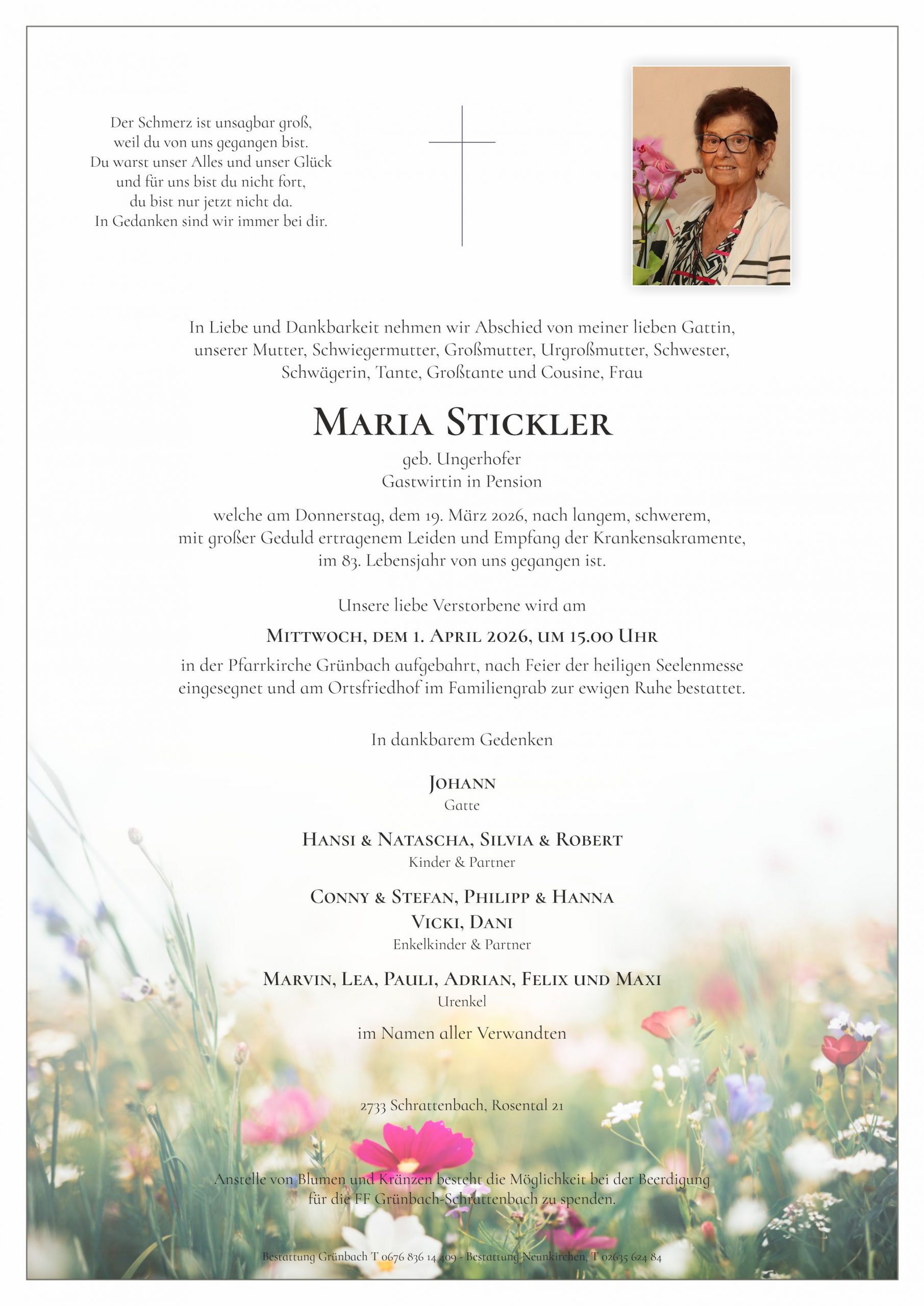 Unser tiefes Mitgefühl entbietet Familie Herbert und Manuela Mohr Grünbach Aufrichtige Anteilnahme
