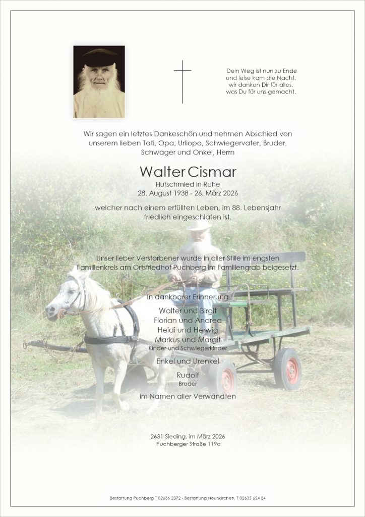 Aufrichtige Anteilnahme entbietet das Team des PBZ Neunkirchen WB3. Gute Reise Herr Cismar